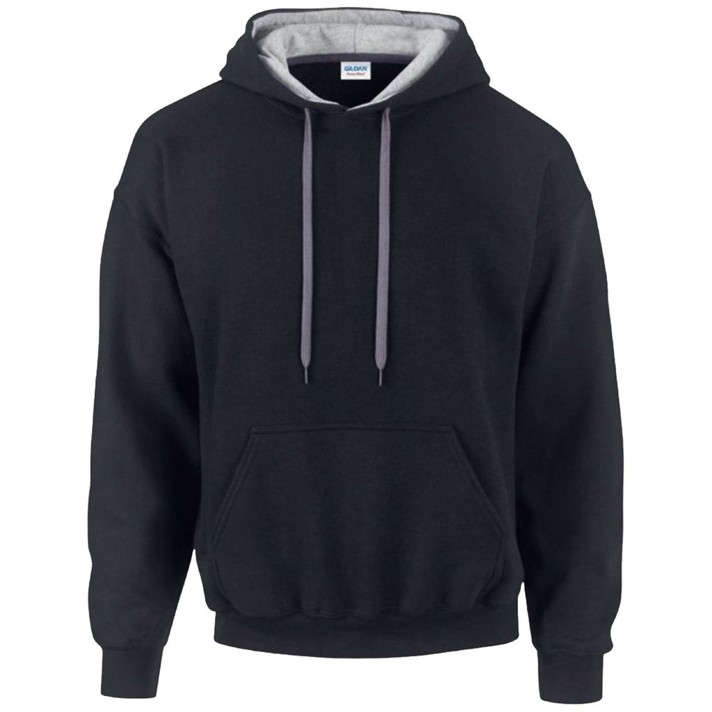 Instantly eye-catching and guaranteed to make your custom logo stand out with ease, the Gildan Men's Black/Sport Grey Heavy Blend Contrast Hooded Sweatshirt will make an asset to any team wardrobe. As the name suggests this sweatshirt features bold contrasting colours amidst the double-layered hood and draw cord, and also features a handy front pouch pocket, ribbed trim and casual drop-shoulder style for an instant laid-back look. Super comfortable and offering plenty of free space for your personalised logo to be added, this sweatshirt is designed to stand the test of time.