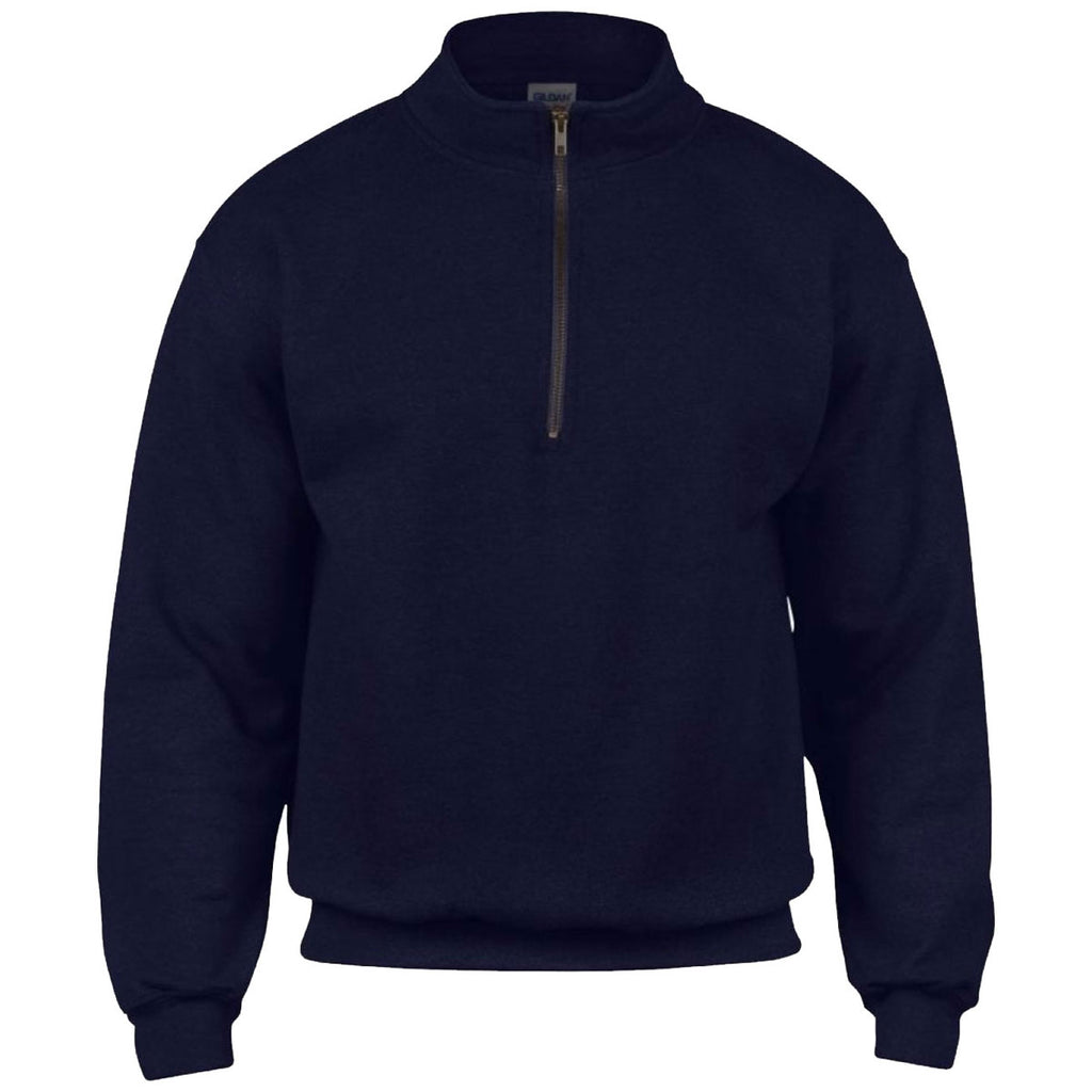 Featuring a high collar for an instantly distinctive look, the Gildan Men's Navy Heavy Blend Vintage Zip Neck Sweatshirt is suitable for a wide variety of casual occasions. Allowing you to add your very own custom logo for immediate personalisation for your team, brand or company, this sweatshirt is complete with a zip neck, drop shoulder style and spandex at the cuffs and hem to ensure a comfortable fit every time. Made using a robust blend of cotton and polyester, this sweatshirt has been expertly designed to stand the test of time.