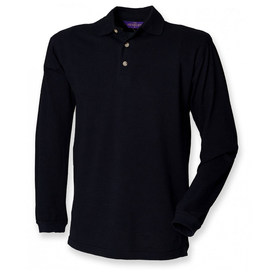 Look your best in the exceptionally versatile custom logoed Henbury Men's Navy Long Sleeve Cotton Pique Polo Shirt. Perfect for the cooler days, this polo is made from 100% cotton for the ultimate comfort and can easily be embroidered with your company logo. Long sleeves will keep the chill out, whilst the stand up collar and three button placket with horn buttons gives you the choice of how you want to wear this polo. It is a smart choice for office uniforms, but it is also ideal for off-duty days thanks to its contemporary and easy wearing design. Side vents and twin needle stitching enhance durability and comfort. Customise now for your next promotional campaign, this long sleeve polo is sure to be a hit.