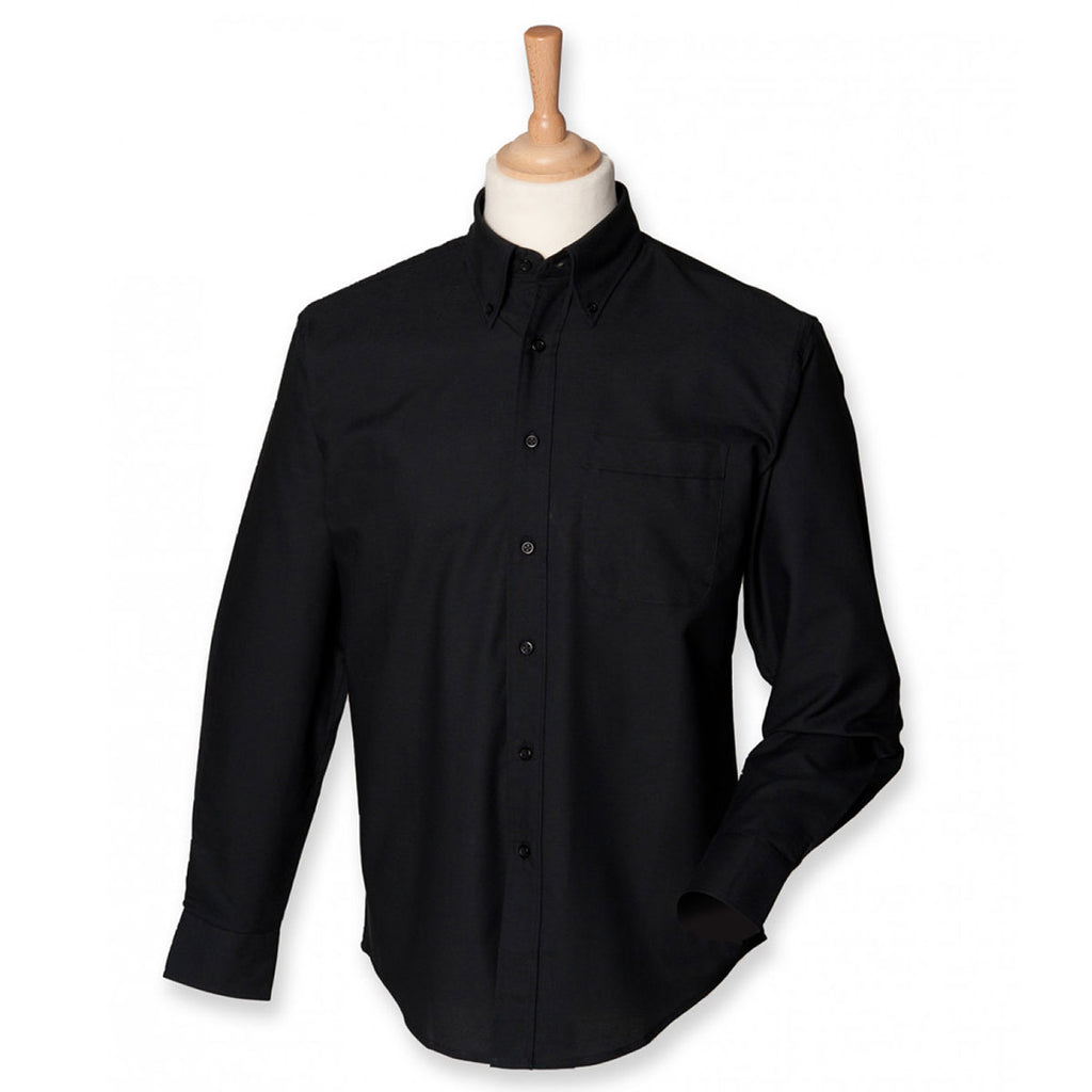 Update your work uniforms with the branded Henbury Men's Black Long Sleeve Classic Oxford Shirt. Ideal for corporate embroidery, this oxford is classically styled from a mix of cotton and polyester for exceptional comfort all-year round. It is easy to care for, and the button-down collar combined with pearlized buttons gives it a professional appearance. Other details include back yoke with centre pleat, as well as a left chest pocket. Long sleeves add versatility, and the perfect fit is assured thanks to adjustable cuffs and a curved hem. The left chest pocket can be used to store a pen. Look your best and stay comfy, have your new work shirts customised by Merchology today.