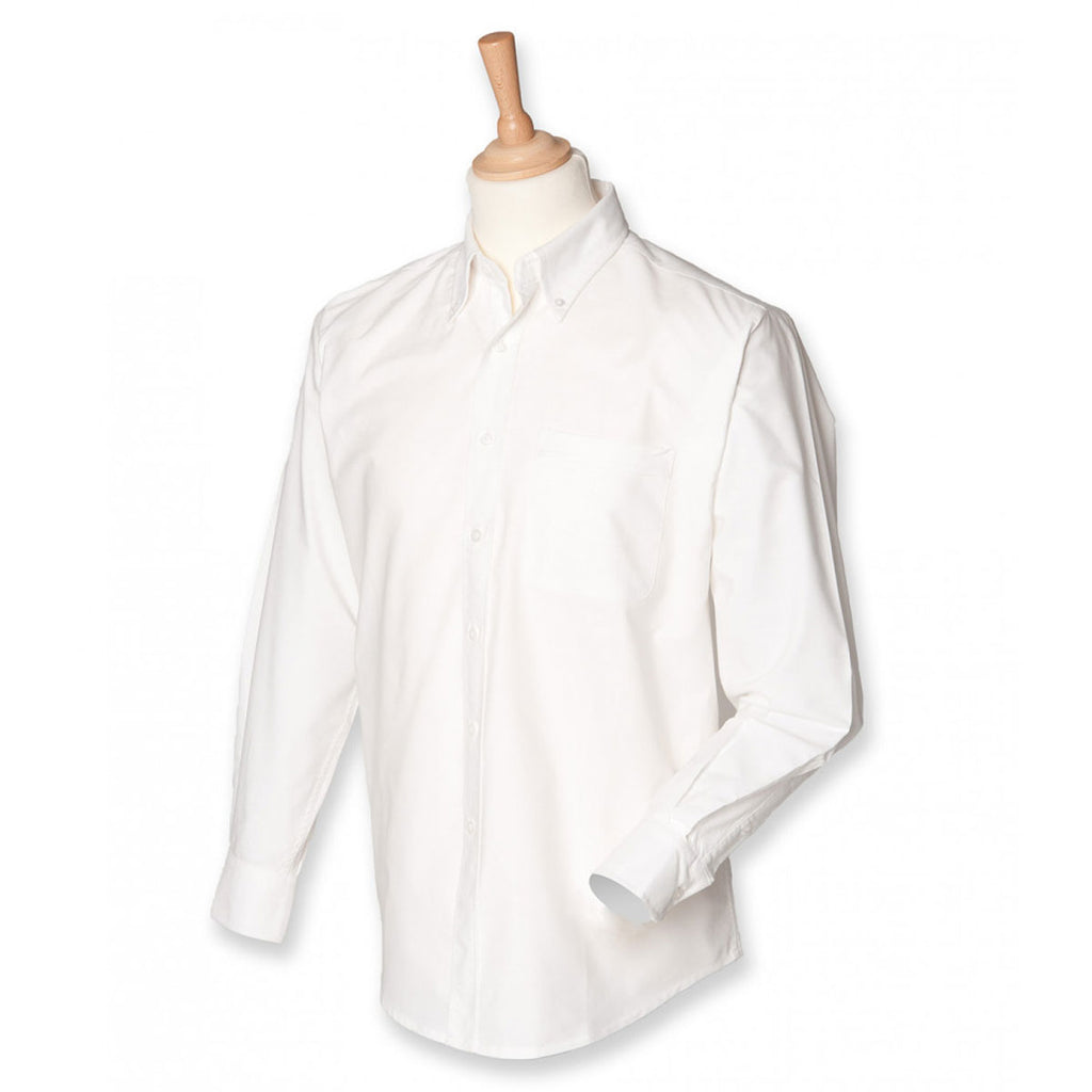 Update your work uniforms with the branded Henbury Men's White Long Sleeve Classic Oxford Shirt. Ideal for corporate embroidery, this oxford is classically styled from a mix of cotton and polyester for exceptional comfort all-year round. It is easy to care for, and the button-down collar combined with pearlized buttons gives it a professional appearance. Other details include back yoke with centre pleat, as well as a left chest pocket. Long sleeves add versatility, and the perfect fit is assured thanks to adjustable cuffs and a curved hem. The left chest pocket can be used to store a pen. Look your best and stay comfy, have your new work shirts customised by Merchology today.