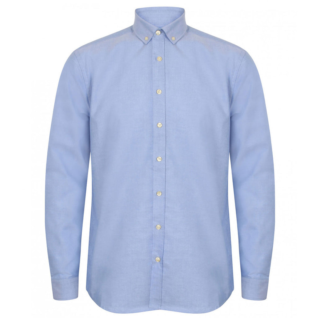 Modern and tag free, the Henbury Men's Blue Modern Long Sleeve Classic Fit Oxford Shirt is the perfect work-ready shirt for corporate embroidery. This branded oxford shirt is made from a cotton/polyester blend which is easy to care for, and it is offered in a classic relaxed fit to suit most men. At a weight of 150 GSM, it is not too heavy and can be worn all year round. This shirt has a short point button down collar for a polished appearance, as well as pearlized buttons which give it a touch of refinement. The back yoke has pleats, and there is also a curved hem and adjustable cuffs. It's ideal for staff uniforms and promotional campaigns.