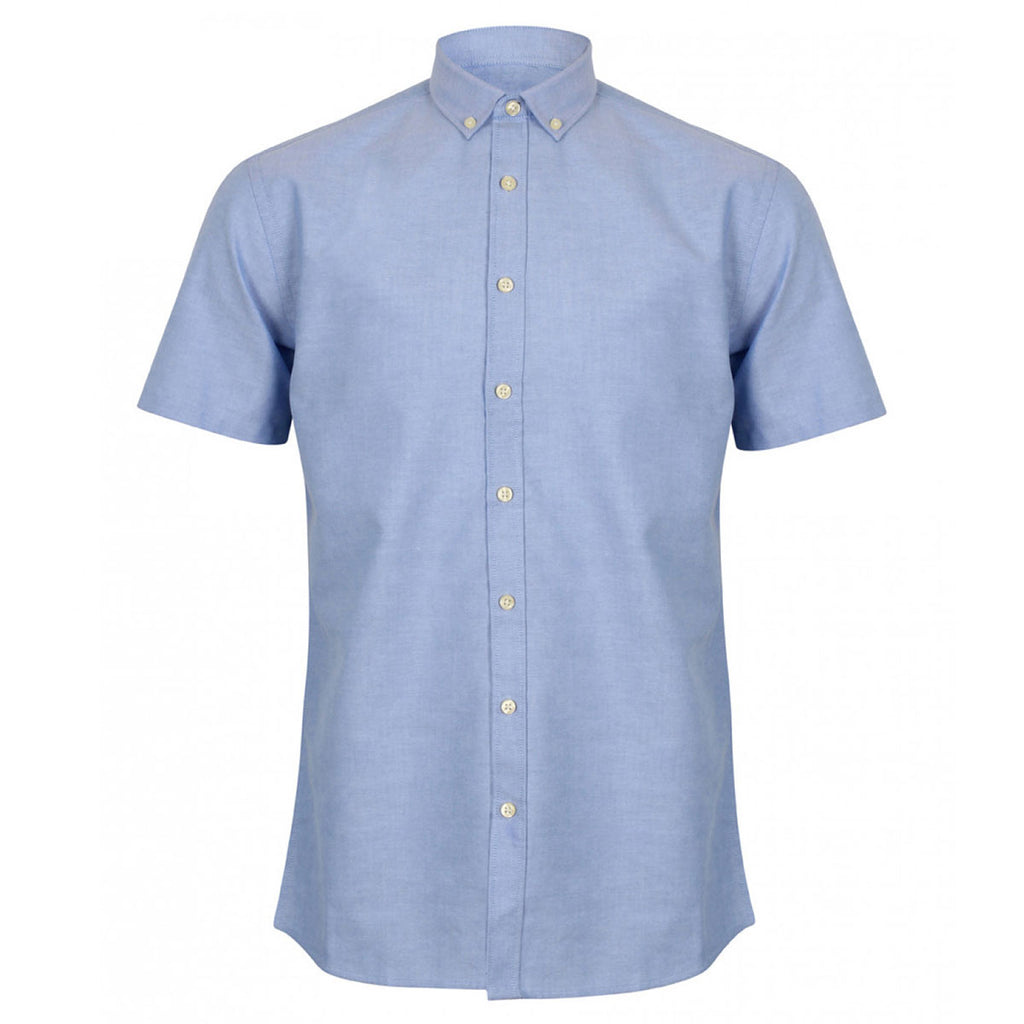 Every man needs a classic oxford, and the custom logoed Henbury Men's Blue Modern Short Sleeve Regular Fit Oxford Shirt is made for summer days at work or play. With short sleeves and 70% cotton/30% polyester construction, this branded oxford will keep you comfy and cool all day long. It is easy to care for and is offered in a modern regular fit for contemporary appeal. Maintain a polished appearance with the short point button down collar and pearlized buttons. This shirt also has back yoke, twin needle side seams, curved hem and is tag free. All that's left to do is print your company logo and use for giveaways or staff uniforms.
