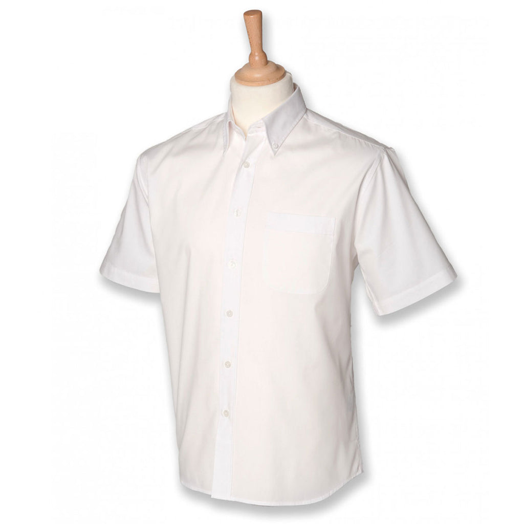 The embroidered Henbury Men's White Short Sleeve Pinpoint Oxford Shirt is a safe choice for hot days at work. Maintain a professional appearance without sacrificing your comfort with this quality branded shirt made from a blend of cotton and polyester. The fabric is easy to care for, so there's no need to worry about ironing on a regular basis. This shirt has a button down collar for a polished appearance, as well as a back yoke with centre box pleat to ensure a great fit when tucked in. Adding to the utility value, there is a left chest pocket for your storage needs. This shirt also has a curved hem to ensure it stays tucked in. It weighs in at 130GSM. Add your company logo today.