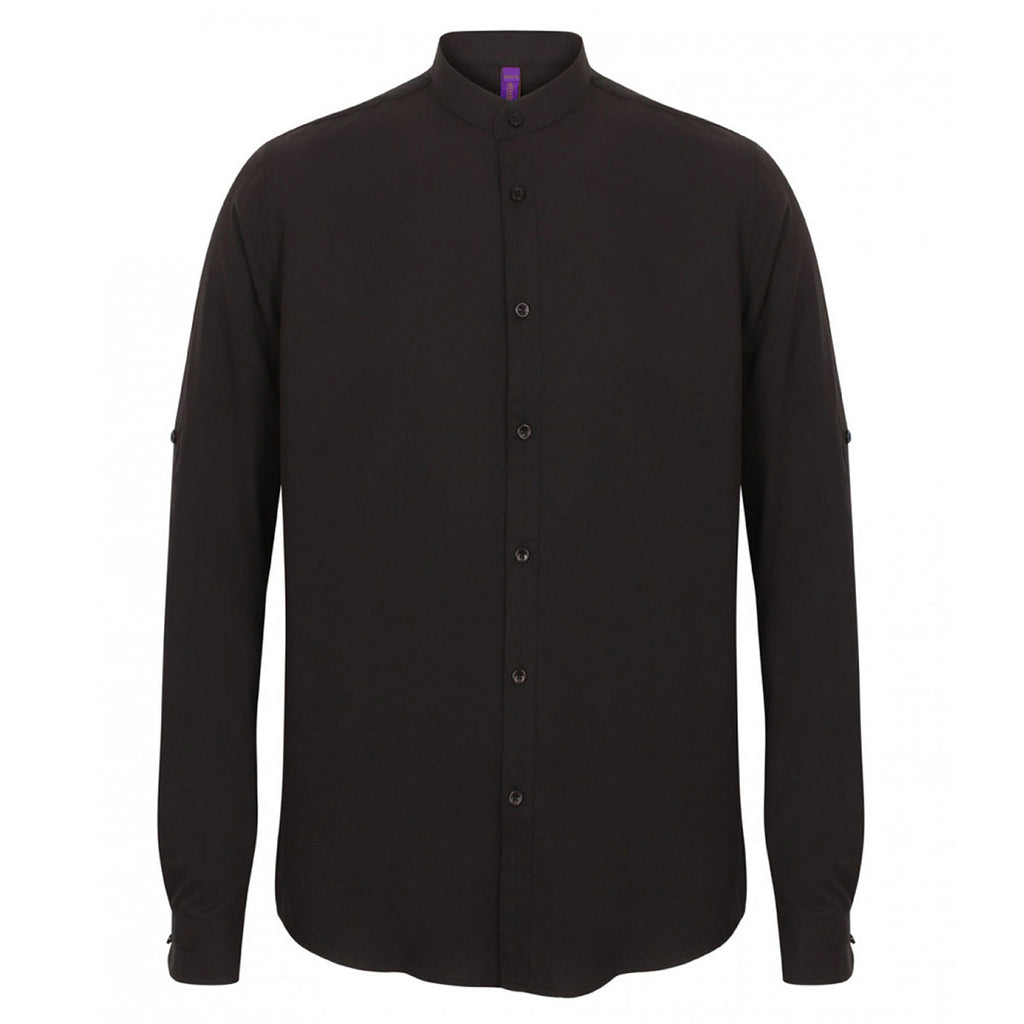 Corresponding Women's Style: Henbury Women's Black Mandarin Roll Sleeve Anti-Bac Wicking Shirt