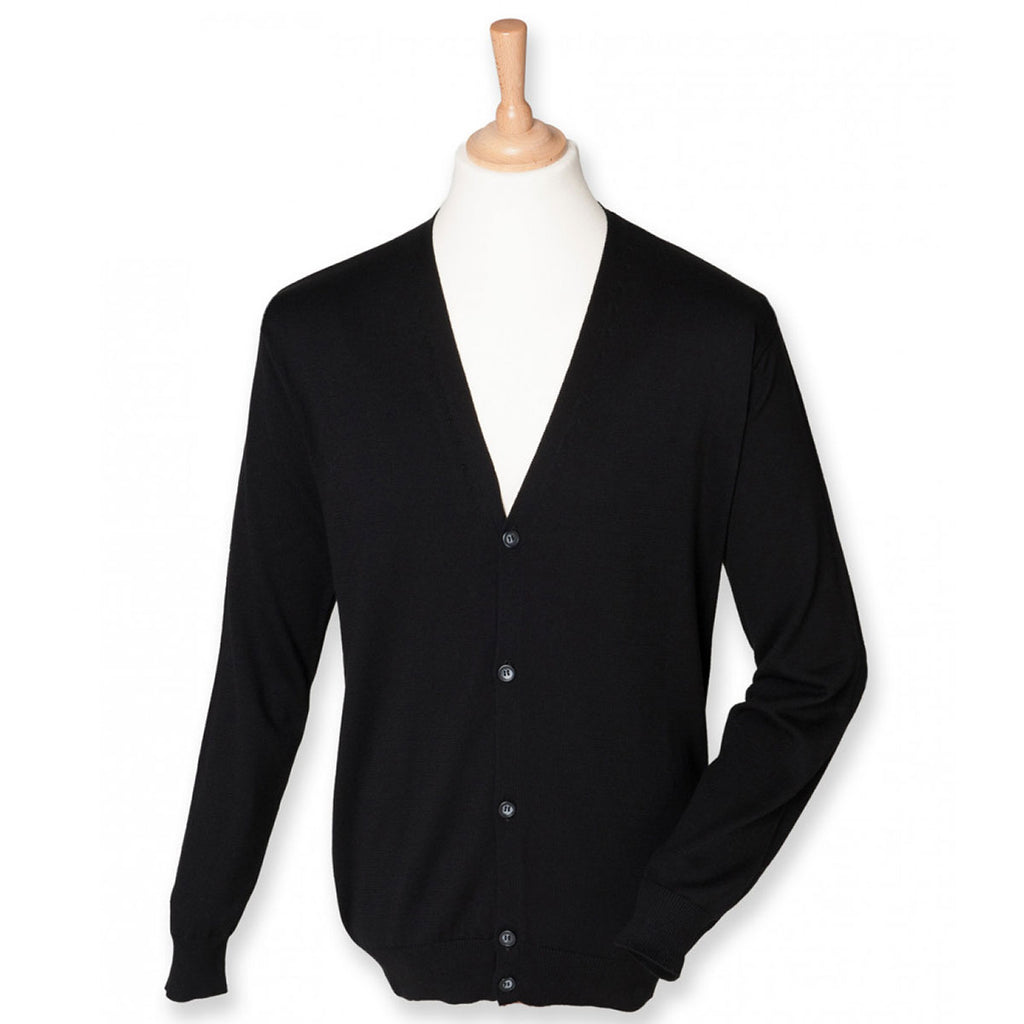 Stylish, practical and warm the custom logoed Henbury Men's Black Lightweight Cotton Acrylic V Neck Cardigan is a great choice for the fashion-forward man. This branded cardigan is made from cotton and acrylic in 12 gauge, so it provides just enough warmth and comfort without being too heavy. It is ready to be logoed with your choice of design. The wearer will love wearing this cardigan over their favourite shirts, with the details such as set in sleeves and five self colour horn effect buttons polishing off a work-ready look. There are three classic colours to choose from which will go with all your favourite shirts and pants, so have yours customised by Merchology today.