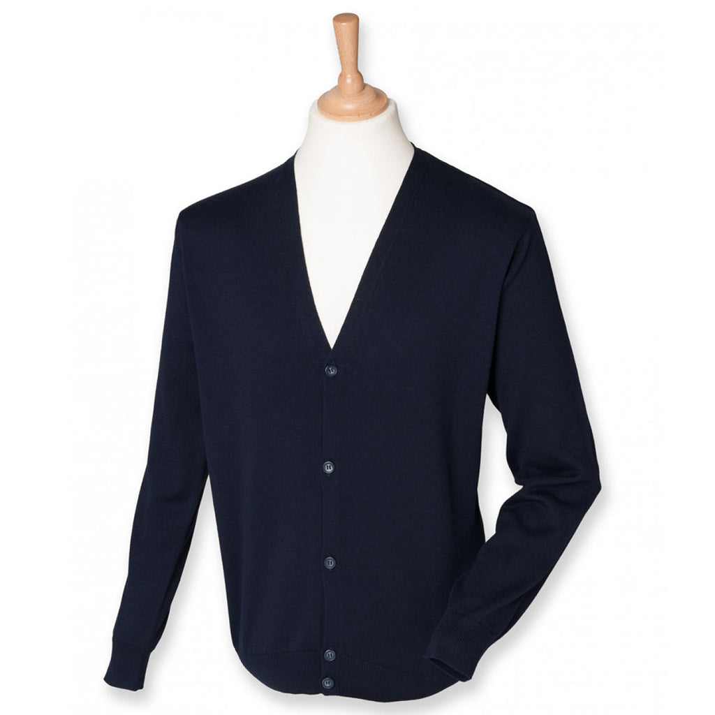 Stylish, practical and warm the custom logoed Henbury Men's Navy Lightweight Cotton Acrylic V Neck Cardigan is a great choice for the fashion-forward man. This branded cardigan is made from cotton and acrylic in 12 gauge, so it provides just enough warmth and comfort without being too heavy. It is ready to be logoed with your choice of design. The wearer will love wearing this cardigan over their favourite shirts, with the details such as set in sleeves and five self colour horn effect buttons polishing off a work-ready look. There are three classic colours to choose from which will go with all your favourite shirts and pants, so have yours customised by Merchology today.