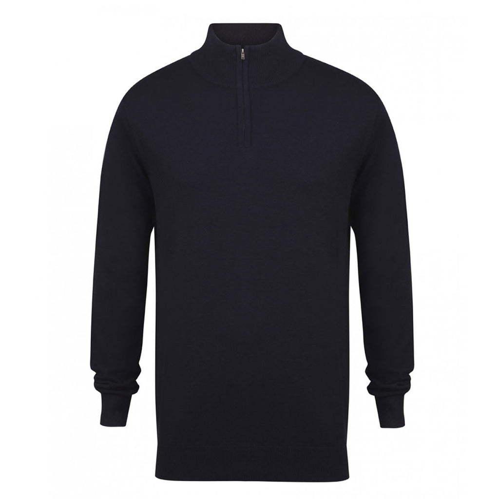 Highly practical and effortlessly stylish, the custom logoed Henbury Men's Navy Zip Neck Sweater is your go to sweater for the cooler days. Made from 50% cotton and 50% acrylic, this sweater can easily be embroidered with custom logo and will provide the wearer with all day comfort. It is made in the 12-gauge style from a fine knit, and it has semi-fashioned sleeve and neck detail. Zip necks are right on trend at the moment, and there is a metal zip and puller for easy adjustment whilst on the move. Wear it over a tee or shirt for a smart and masculine look. Choose from 3 different colours and have yours decorated by Merchology, it's a great choice for promotional campaigns.