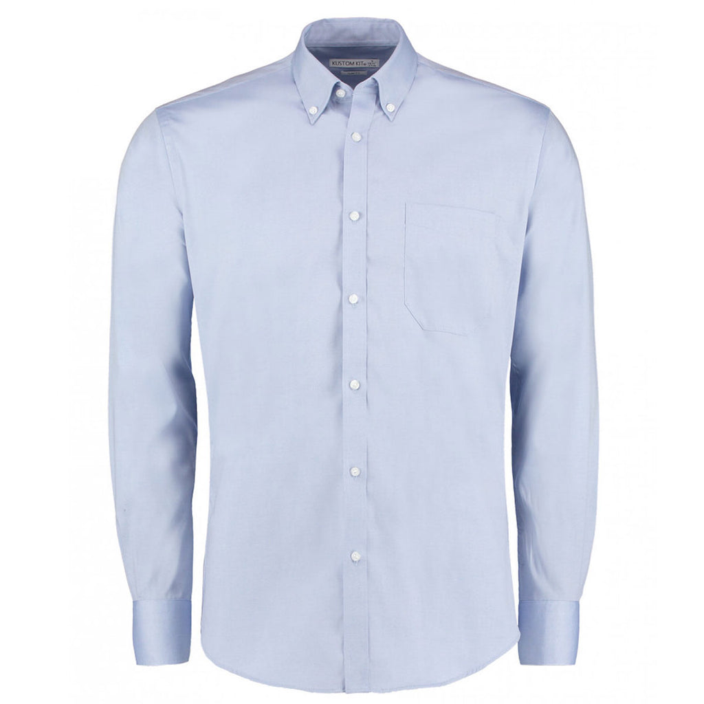 Able to achieve a distinctly tailored look with a slim-fit design, the Kustom Kit Men's Light Blue Premium Long Sleeve Slim Fit Oxford Shirt is the epitome of corporate style. Giving you the option for customization with your very own company logo, you're able to create a bespoke workplace uniform guaranteed to impress customers. Also featuring a left chest pocket, button-down collar and stylish two-button cuffs, this customizable shirt has been made with easy-iron fabric for premium convenience and ease of care at home.
