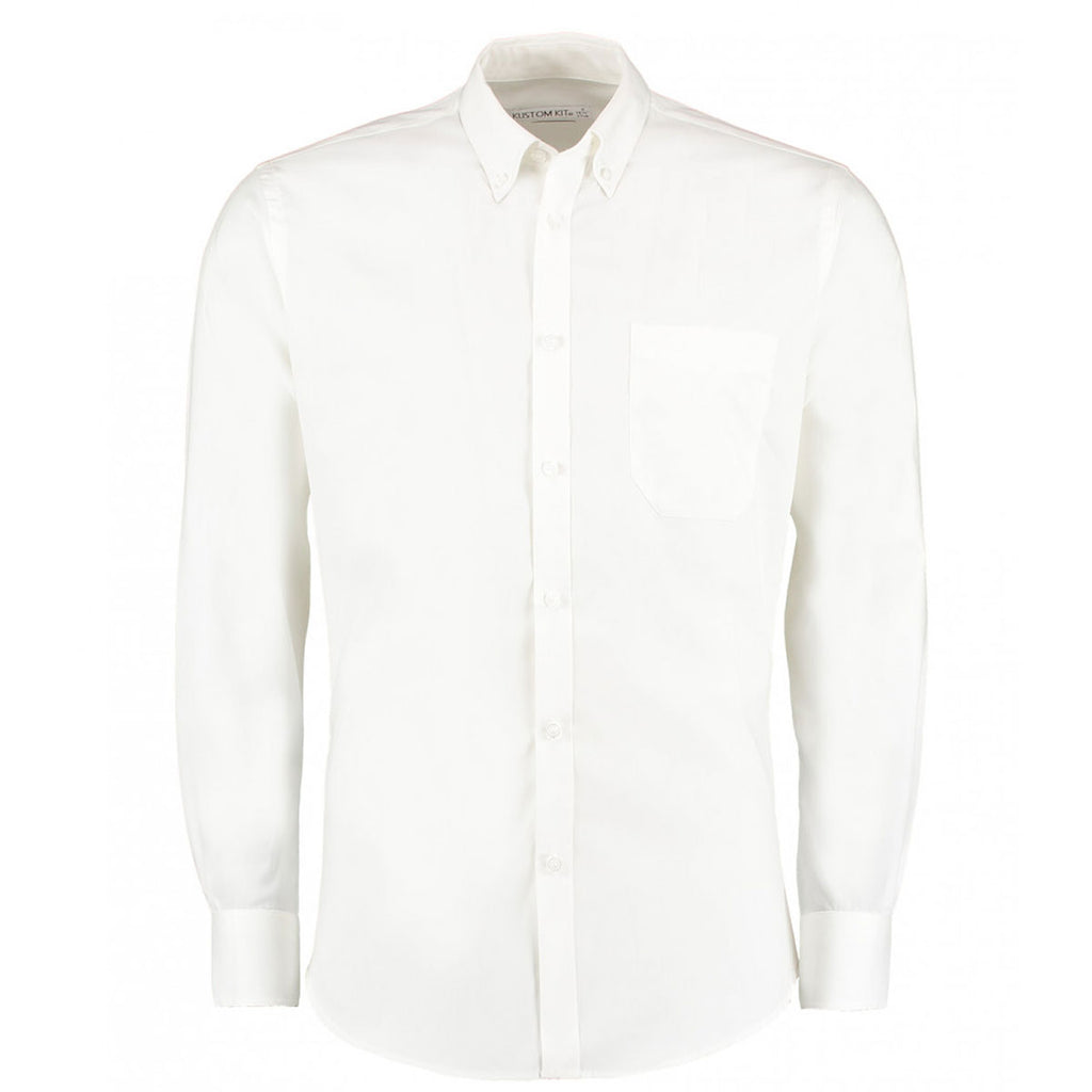Able to achieve a distinctly tailored look with a slim-fit design, the Kustom Kit Men's White Premium Long Sleeve Slim Fit Oxford Shirt is the epitome of corporate style. Giving you the option for customization with your very own company logo, you're able to create a bespoke workplace uniform guaranteed to impress customers. Also featuring a left chest pocket, button-down collar and stylish two-button cuffs, this customizable shirt has been made with easy-iron fabric for premium convenience and ease of care at home.