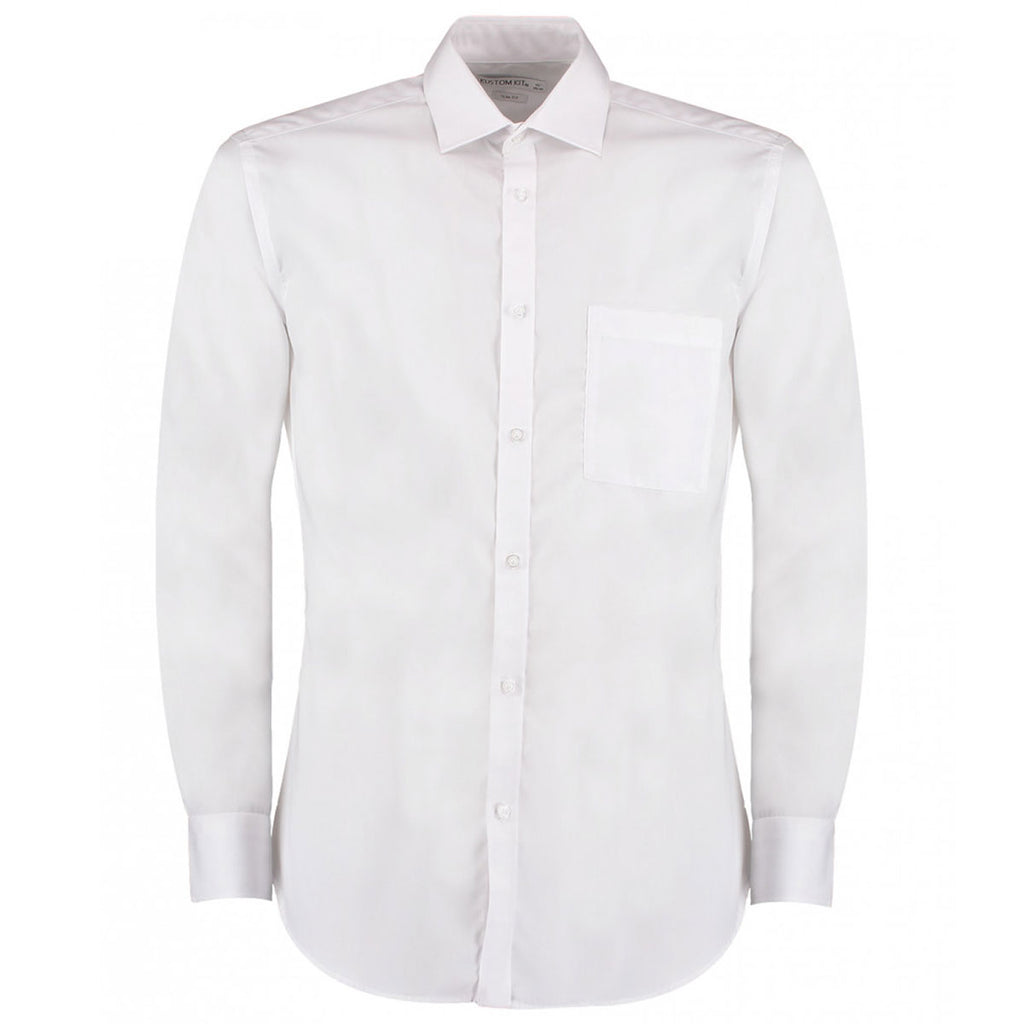 If you're looking to create a smart yet comfortable workplace uniform that still offers employees convenience and ease of care, the Kustom Kit Men's White Premium Long Sleeve Non-Iron Slim Fit Shirt is the ideal option. Allowing you to add your very own company logo for a distinctly personalised look, this business-like shirt has been crafted using non-iron fabric with wrinkle-resistant taped seams. Ensuring a smooth appearance every time without the hassle of ironing, this customizable slim-fit shirt also offers a fused stand-up collar, left chest pocket and a sleek curved hem.