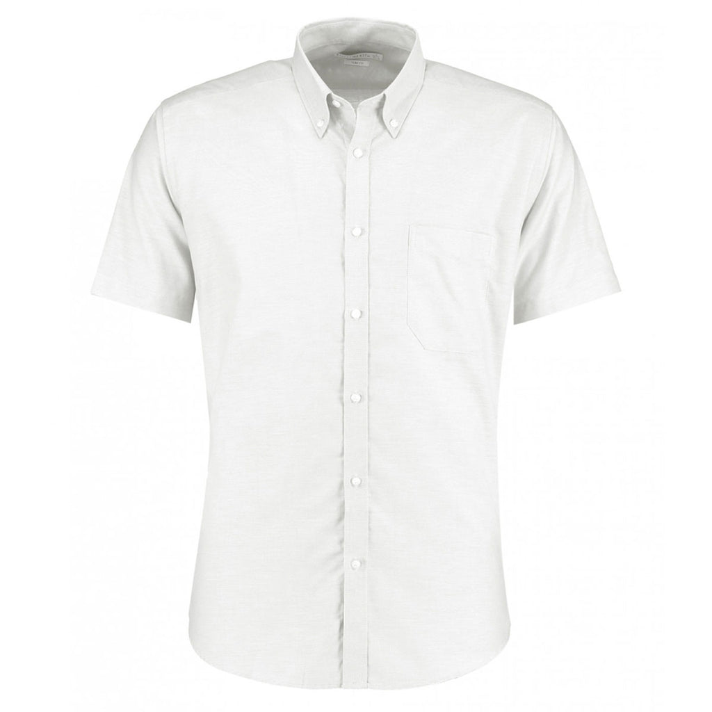 Minimalistic and traditional, the Kustom Kit Men's White Slim Fit Short Sleeve Oxford Shirt offers everything a smart shirt should. Able to be customised with your very own custom logo too, this shirt is ideal for creating a personalised workplace uniform. Lightweight yet professional in style, this shirt features a fused button-down collar, useful chest pocket and a flattering curved hem. Guaranteed to look business-like and smart with every wear, this slim fit shirt is perfect for a year-round custom logo uniform or to be used as a lighter summer option.