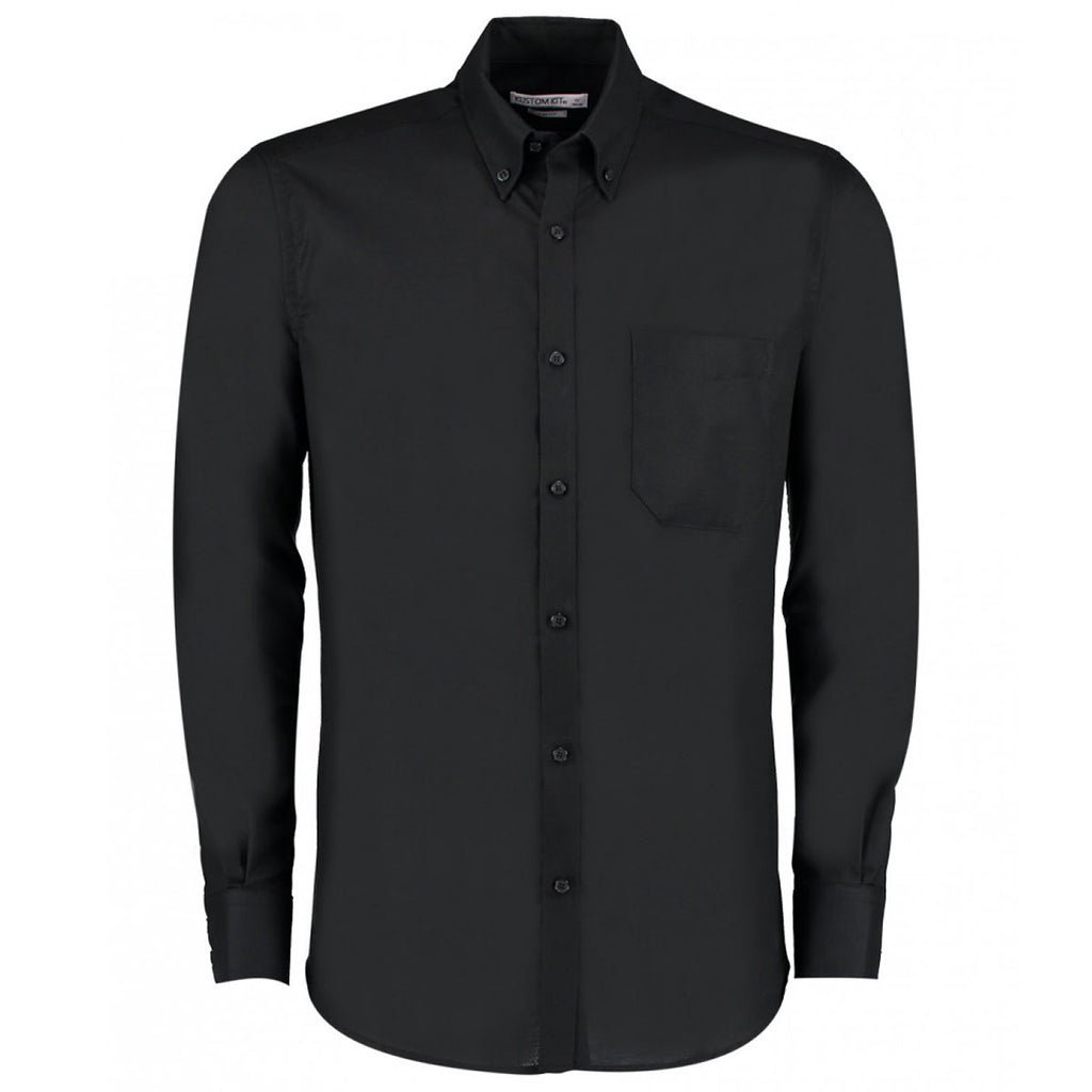 The ideal option for creating a custom workplace uniform for your company or business, the Kustom Kit Men's Black Long Sleeve Slim Fit Workwear Oxford Shirt is guaranteed to impress. Effortlessly smart and tailored, this structured shirt features a fused button-down collar, handy chest pocket and two-button cuffs for that classically professional look. Ideal for representing your company logo when worn alone or with a matching tie, this business-like shirt is easy to personalise and offers a sleek slim fit.