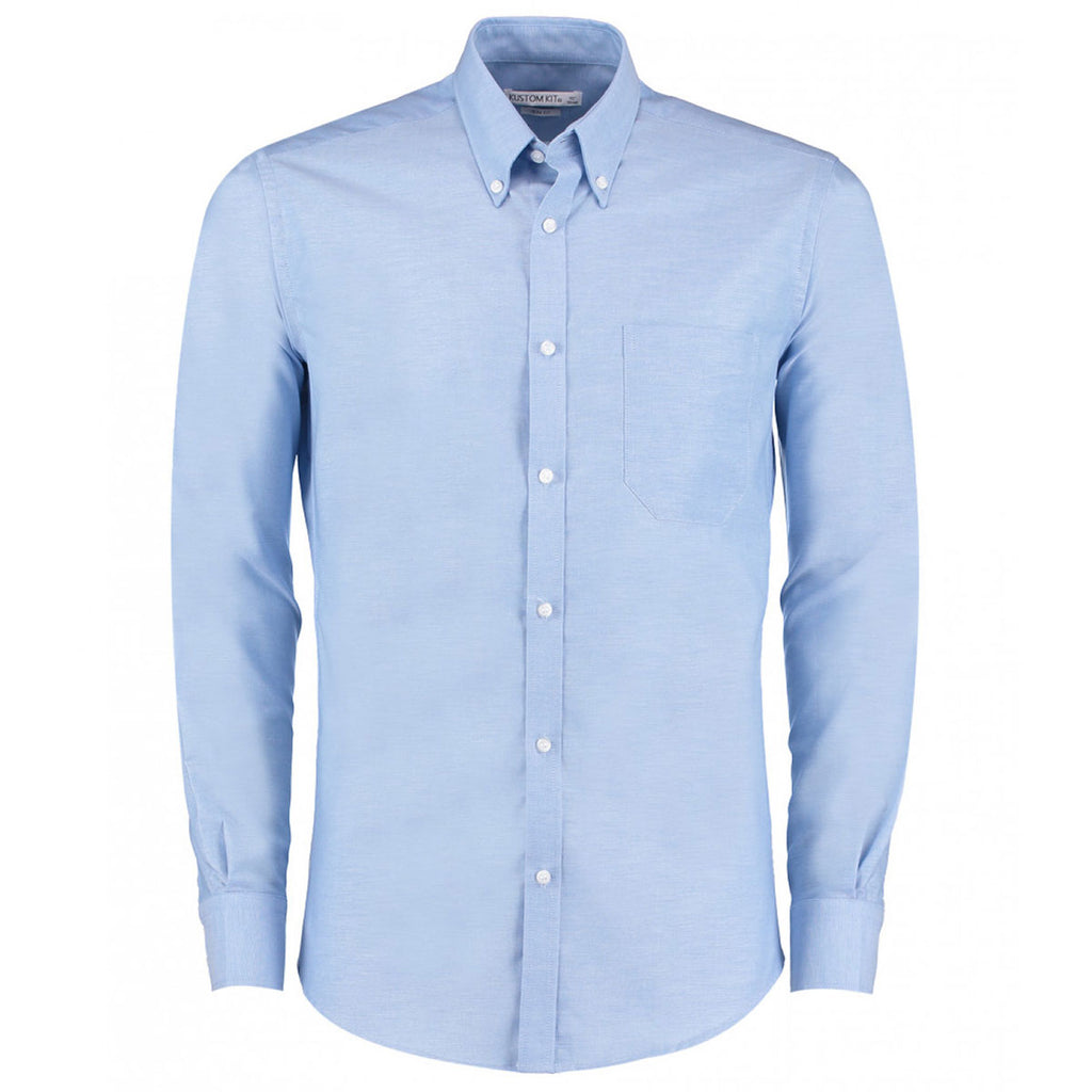 The ideal option for creating a custom workplace uniform for your company or business, the Kustom Kit Men's Light Blue Long Sleeve Slim Fit Workwear Oxford Shirt is guaranteed to impress. Effortlessly smart and tailored, this structured shirt features a fused button-down collar, handy chest pocket and two-button cuffs for that classically professional look. Ideal for representing your company logo when worn alone or with a matching tie, this business-like shirt is easy to personalise and offers a sleek slim fit.
