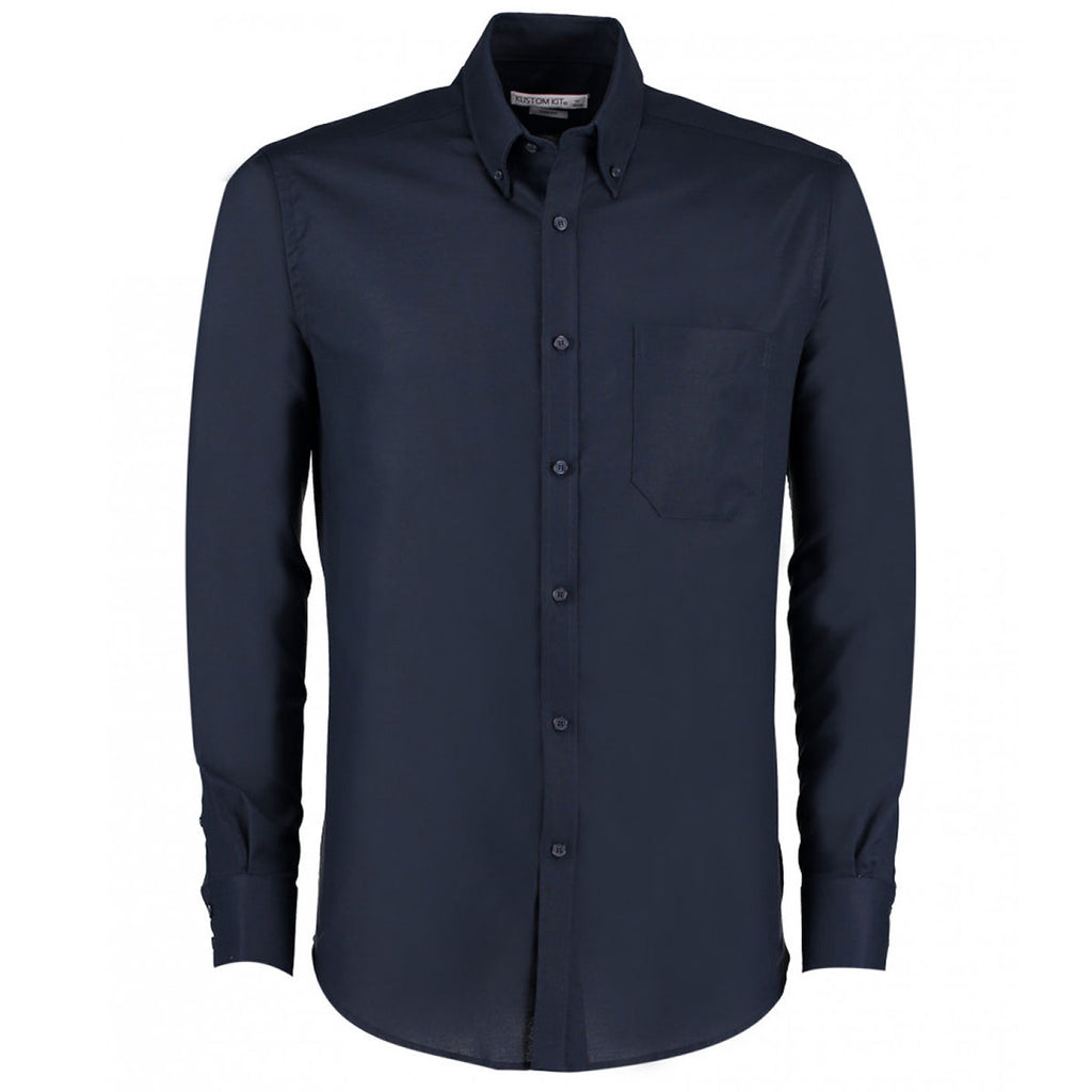 The ideal option for creating a custom workplace uniform for your company or business, the Kustom Kit Men's Navy Long Sleeve Slim Fit Workwear Oxford Shirt is guaranteed to impress. Effortlessly smart and tailored, this structured shirt features a fused button-down collar, handy chest pocket and two-button cuffs for that classically professional look. Ideal for representing your company logo when worn alone or with a matching tie, this business-like shirt is easy to personalise and offers a sleek slim fit.