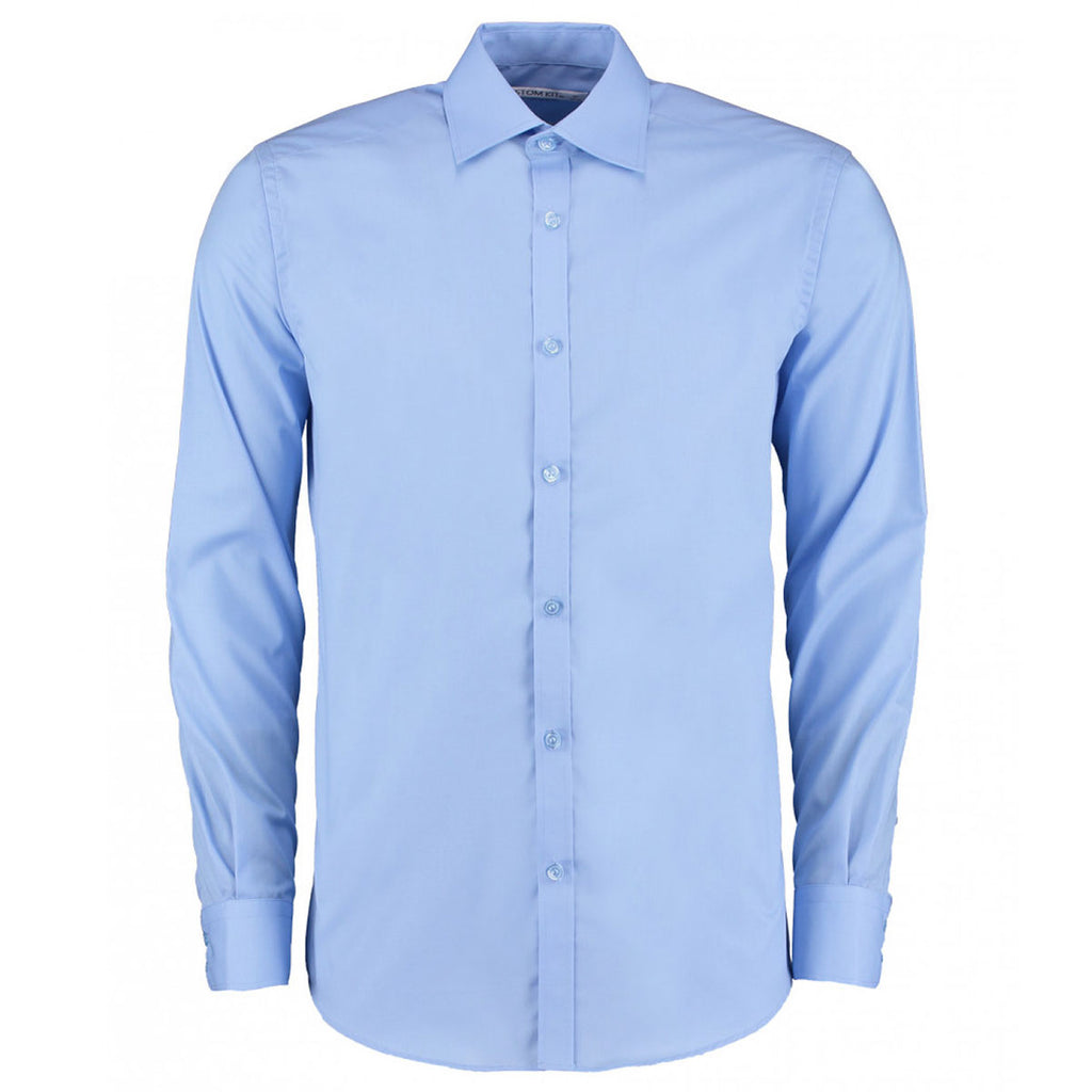 Slim fitting for that extra sleek and sophisticated look, the custom logoed Kustom Kit Men's Light Blue Long Sleeve Slim Fit Business Shirt is perfect for all corporate settings. Featuring a classically smart design, this shirt features a slimming curved hem, stand-up collar and stitched armholes for a structured yet comfortable feel. Lightweight and made using easy-iron fabric, you have plenty of space available to place your very own company logo, allowing you to create a custom range of shirts your workforce are sure to enjoy wearing.