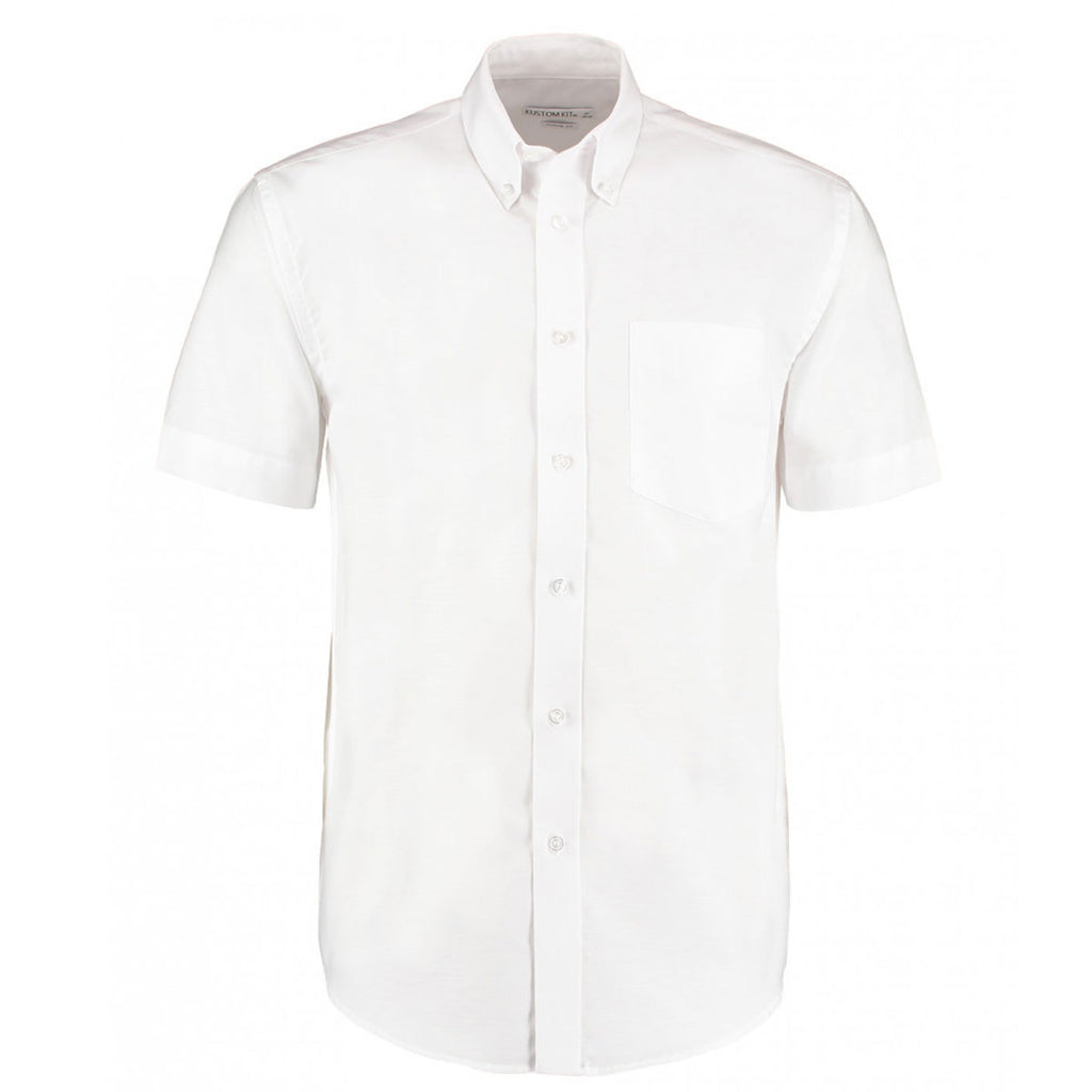 Perfect for a variety of working environments, the Kustom Kit Men's White Short Sleeve Classic Fit Workwear Oxford Shirt is hugely versatile. Minimalistic and classic in style, this shirt offers ample space for you to add your very own company logo for instant brand personalization. Made using easy-iron fabric, this custom shirt features a handy chest pocket, fused button-down collar and a flattering curved hem. Machine washable and perfect for adding your custom logo with its simple style, this shirt is the ideal option for any professional working uniform.