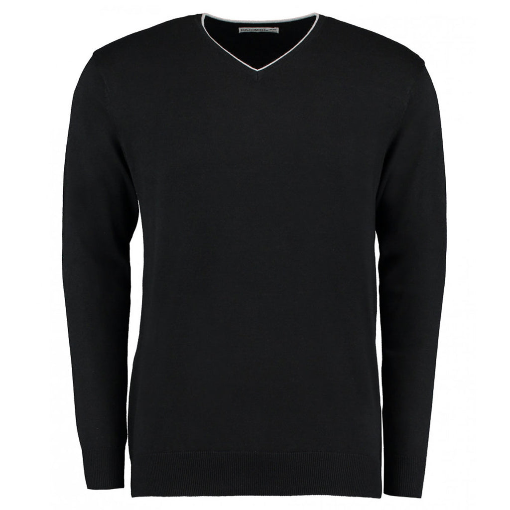 Specifically designed to be customised for casual workwear or to be given as a corporate gift, the Kustom Kit Men's Black/Silver Contrast Arundel V Neck Sweater is ideal to be personalised with your very own custom logo. As the name suggests, this sweater features a stylish contrasting V neck, in addition to a ribbed hem and reinforced shoulder seams for flattering structure. Allowing your custom logo to stand out against its minimalistic style, this Kustom Kit sweater is guaranteed to impress - and be consistently comfortable for the wearer.