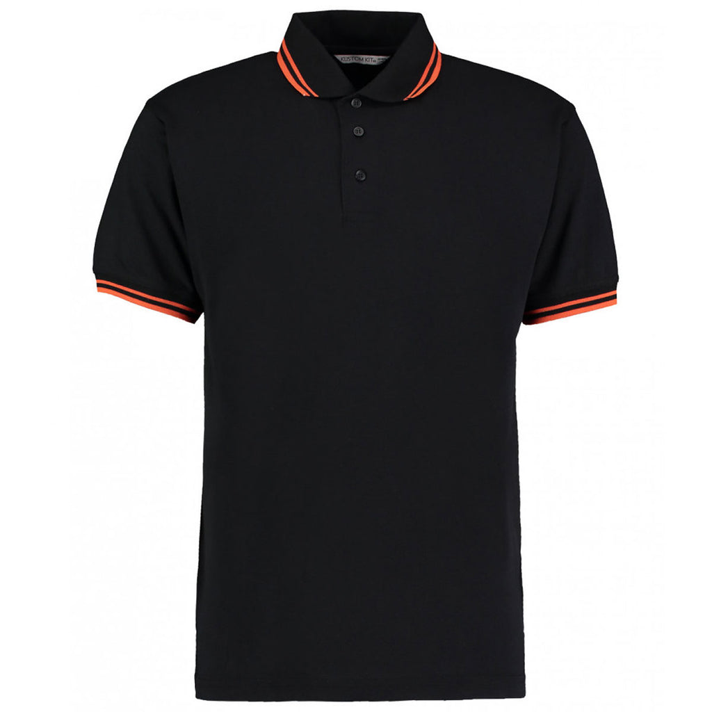 As the name suggests, the Kustom Kit Men's Black/Orange Contrast Tipped Poly/Cotton Pique Polo Shirt offers a modern contrasting design. Eye-catching and bold, this polo offers plenty of room for you to add your very own company logo, as well as a taped neck, taped shoulder seams and a three-button placket. Classic in design yet offering a modern twist with its contrasting colours, this polo shirt is easy to customise with your logo - perfect for a casual workwear uniform.