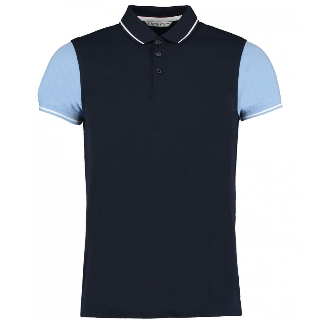 Offering a refreshing alternative to a one-toned polo, the Kustom Kit Men's Navy/Light Blue Contrast Tipped Pique Polo Shirt is effortlessly modern yet still comfortable. Featuring contrasting sleeves and a classic three-button placket, you have ample space to choose from when personalising with your very own custom logo. So, whether you want to create a modern, casual workforce uniform for staff or make corporate gifts with your logo added to promote your company, this contrasting polo shirt is a great option.