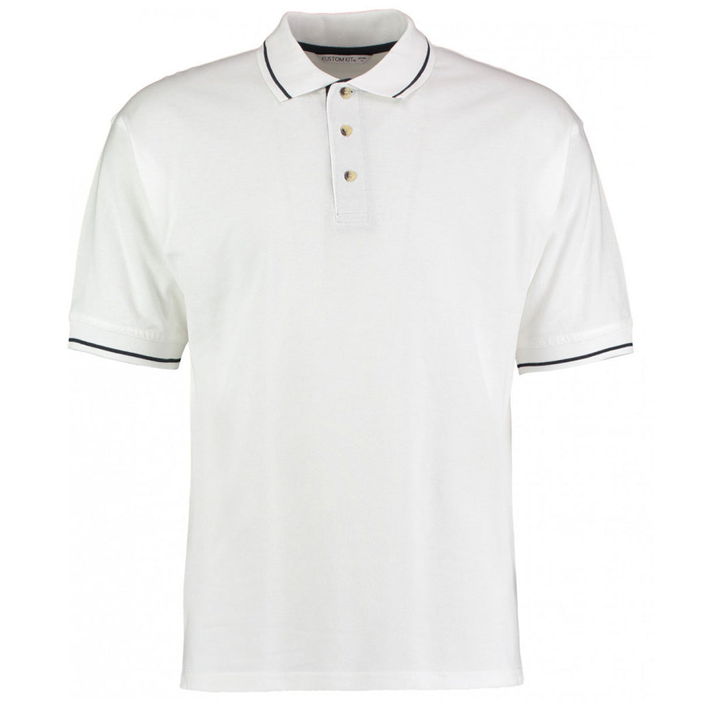 Featuring a classic fit and all aspects all traditional polo shirts should have, the Kustom Kit Men's White/Navy St Mellion Tipped Cotton Pique Polo Shirt is both comfortable and stylish. Ideal for summer workwear or for sporting activities, you're able to add your very own corporate logo with ease. Minimalistic yet still offering a bold contrasting inner placket, collar and cuffs, this polo shirt is hugely versatile - perfect for personalisation and super lightweight to keep the wearer comfortable at all times.