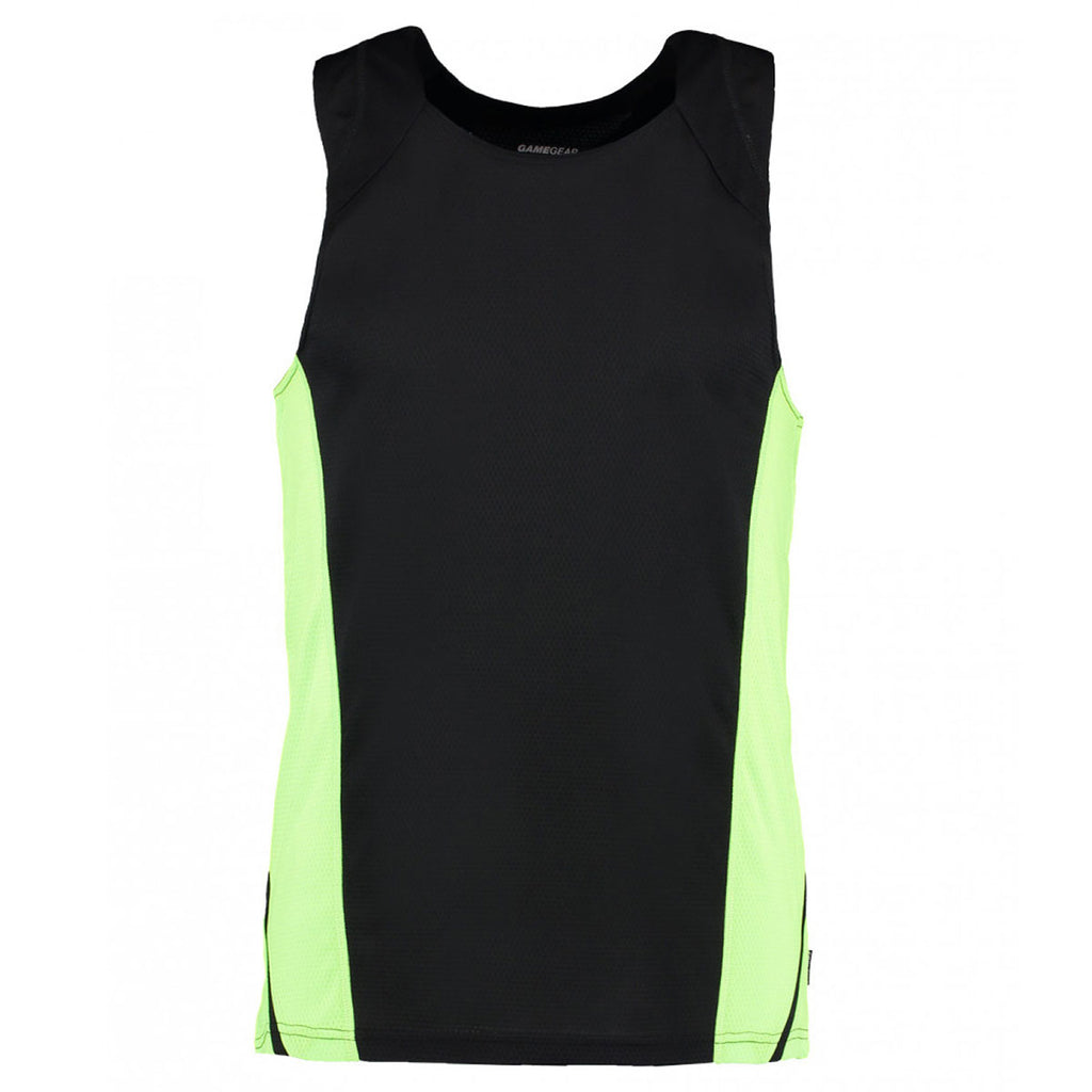 Expertly designed for ease of movement and maximum performance, the Gamegear Men's Black/Fluorescent Lime Cooltex Sports Vest is both customisable and hugely versatile. Offering you the chance to add your very own custom logo for premium personalisation, instantly representing your brand or team is easy. Designed with distinctive contrasting side panels, spacious armholes and a flattering curved hem, ease of movement and breathability is guaranteed with this vest. Ideal for team sports or training purposes in the gym or out on the track, this Gamegear customisable vest can be applied to a wide variety of activities.