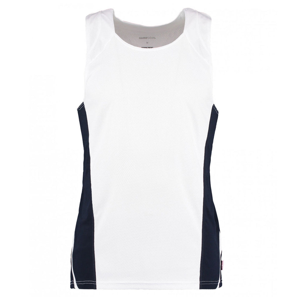 Expertly designed for ease of movement and maximum performance, the Gamegear Men's White/Navy Cooltex Sports Vest is both customisable and hugely versatile. Offering you the chance to add your very own custom logo for premium personalisation, instantly representing your brand or team is easy. Designed with distinctive contrasting side panels, spacious armholes and a flattering curved hem, ease of movement and breathability is guaranteed with this vest. Ideal for team sports or training purposes in the gym or out on the track, this Gamegear customisable vest can be applied to a wide variety of activities.