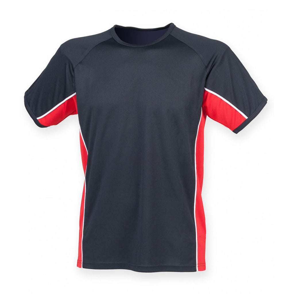 Every man needs a great fitness shirt, and the Finden + Hales Men's Navy/Red/White Performance Panel T-Shirt is a great choice for promoting your company logo. This custom printed shirt is made from 100% polyester which is moisture wicking, making it ideal for running and gym wear. It has a birds eye knit as well as self fabric collar, and a modern look is ensured by the raglan sleeves. To break up the monotony and separate it from the rest, this shirt features contrast piping and paneling down body sides which draws attention to the wearer. This shirt also has a double needle hem for durability. Have yours logoed by Merchology and use for giveaways or staff uniforms.