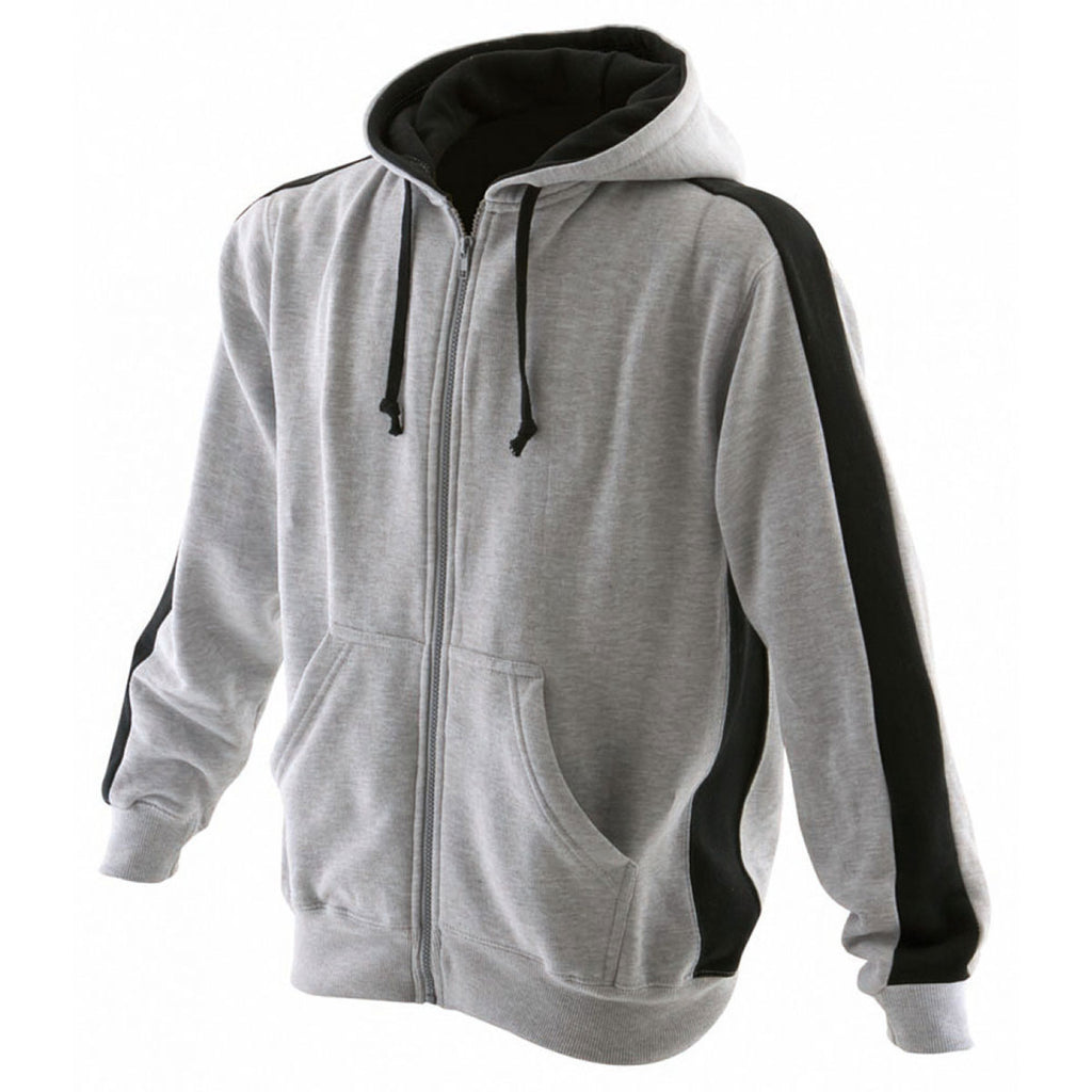 Get some instant warmth with the logoed Finden + Hales Men's Heather/Black Contrast Zip Hooded Sweatshirt with company logo. This branded hoodie is made from a blend of cotton and polyester for the ultimate in comfort and warmth, and it has a contrast lined hood and drawcord for some added visual interest. There is also contrast panels down the shoulders, sleeves and body sides. You can wear it zipped up during chilly mornings or leave it open as the day starts to progress. Front pouch pockets are ideal for warming your hands, and ribbed cuffs and hem round out the details. Everyone needs a hoodie, embroider your company logo and use for staff uniforms and giveaways today.