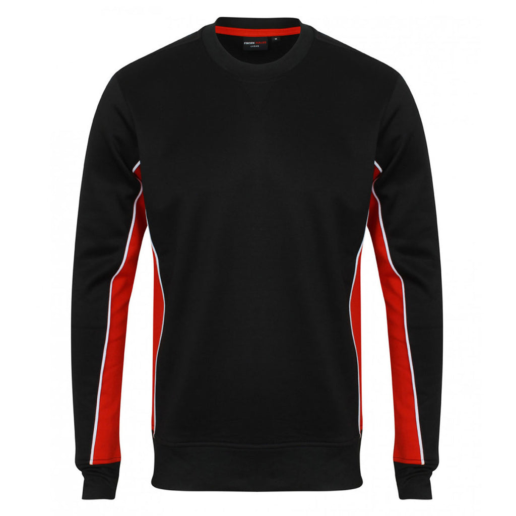 Upgrade your active wear with the custom logoed Finden + Hales Men's Black/Red Contrast Crew Neck Sweatshirt. This branded sweatshirt is perfect for wearing to the gym, running and whilst taking a break and is made from 100% polyester. It is quick drying and offered in a slim fit for a sporty appearance. There is also a drop shoulder style, brushed back fleece, ribbed collar, cuffs and hem to ensure comfort. The V detail at neck rounds out the look and helps to draw attention to your company logo, and it works well alongside the contrast underarm, side panels and piping. With a weight of 250 GSM, this sweatshirt is sure to come in handy. Customise today.