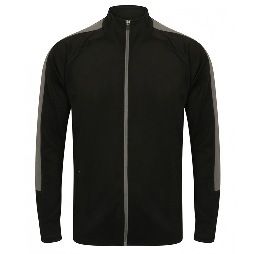 With its sporty appearance, the logoed Finden + Hales Men's Black/Gunmetal Knitted Tracksuit Top is your go to choice for trackside wear. Constructed from 95% polyester with 5% elastane interlock, this branded tracksuit top will look great on any man and provide exceptional comfort. It has a funnel neck as well as full length contrast zip, so you can choose which way you wear it. There are contrast outer sleeve panels, and two front zip pockets which can be used to store coins or to warm your hands. There's also 1x1 ribbed cuffs and an open hem. Choose from 3 different colours and add your company logo today to enhance brand awareness.