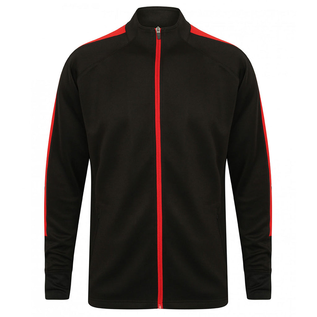 With its sporty appearance, the logoed Finden + Hales Men's Black/Red Knitted Tracksuit Top is your go to choice for trackside wear. Constructed from 95% polyester with 5% elastane interlock, this branded tracksuit top will look great on any man and provide exceptional comfort. It has a funnel neck as well as full length contrast zip, so you can choose which way you wear it. There are contrast outer sleeve panels, and two front zip pockets which can be used to store coins or to warm your hands. There's also 1x1 ribbed cuffs and an open hem. Choose from 3 different colours and add your company logo today to enhance brand awareness.