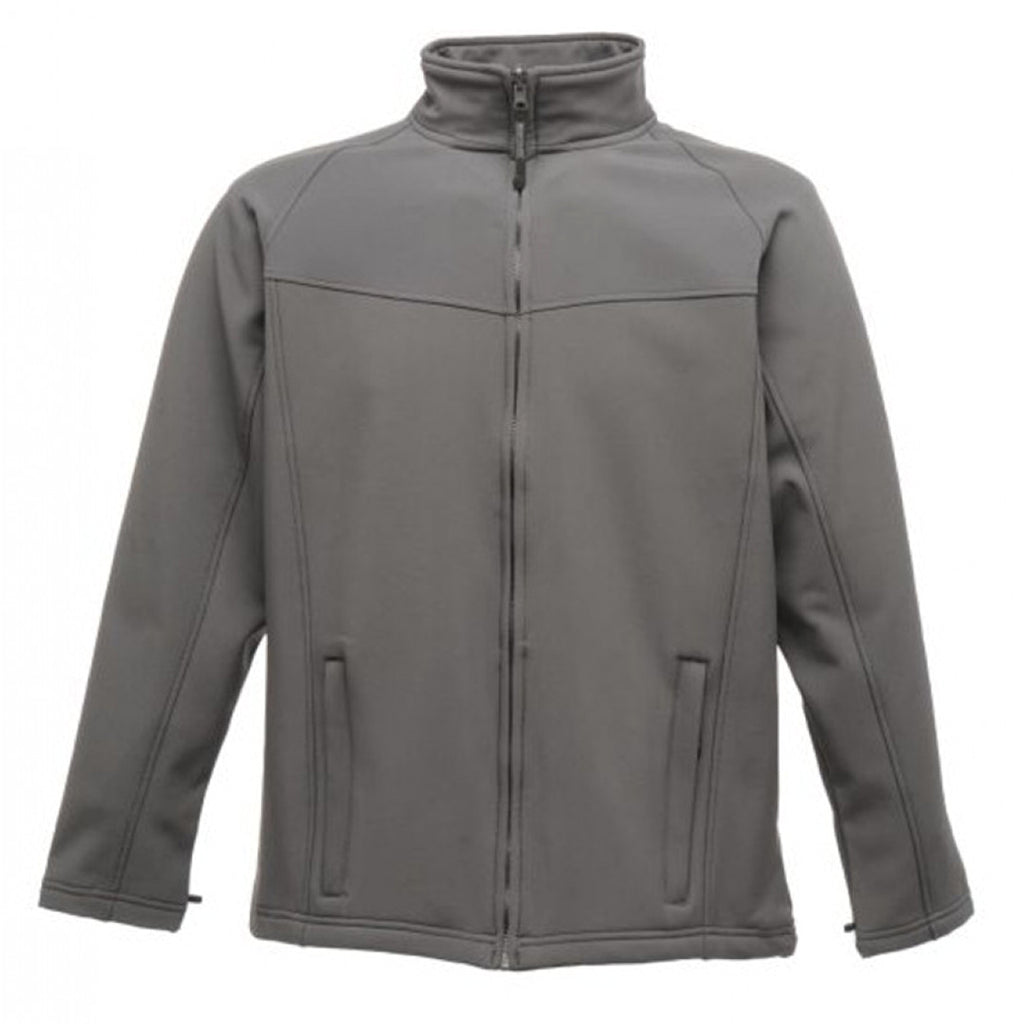 In your search for a great, functional wear that can be used for marketing your company to potential customers, the Regatta Men's Seal Grey Uproar Soft Shell Jacket is what we recommend. Decorated with your custom corporate logo, you will find it easily applicable in different scenarios. Camping, attending meetings in other regions, going to trade shows with the team, and even picnics are just a few that span both official and casual use. The jacket, to ease use in areas above is showerproof and wind resistant, and likewise your corporate logo. So, no matter the environment, the jacket keeps working.