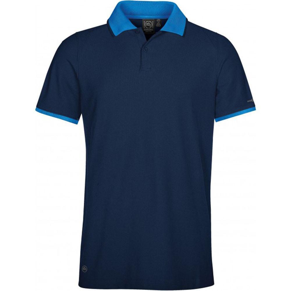 What many people forget is that polo is also a sport-and the polo shirt is designed to be an active shirt. This Stormtech Men's True Navy/Electric Blue Cignus Performance Polo puts the performance back in performance polo with the right combination of strong fabric and breathable wearing. Add your unique logo to get some additional branding performance out of it.