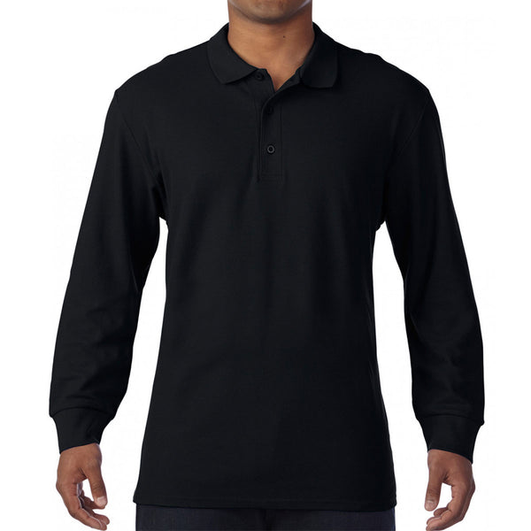 Gildan Men's Black Long Sleeve Premium Cotton Double Pique Polo Shirt