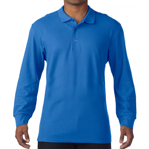 Gildan Men's Royal Long Sleeve Premium Cotton Double Pique Polo Shirt