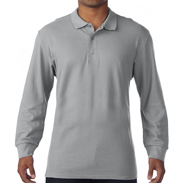 Gildan Men's Sport Grey Long Sleeve Premium Cotton Double Pique Polo Shirt