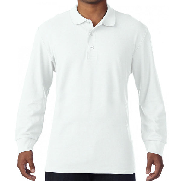 Gildan Men's White Long Sleeve Premium Cotton Double Pique Polo Shirt