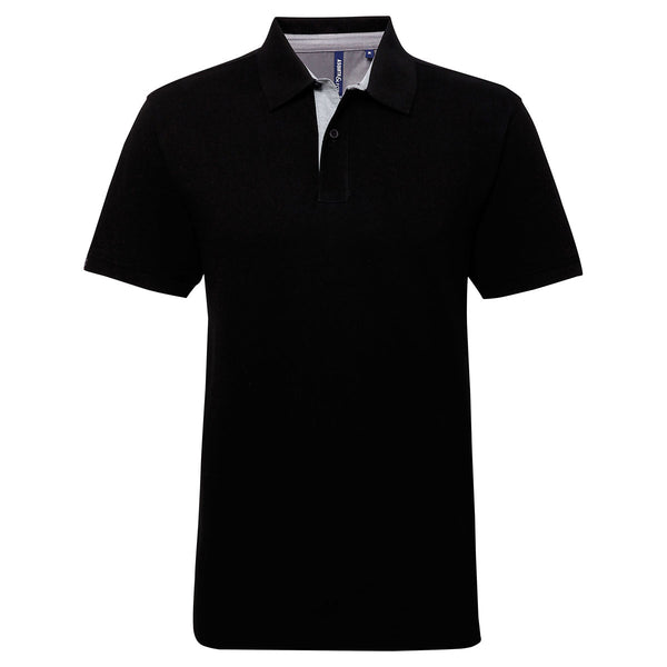 Asquith & Fox Men's Black/Charcoal Cotton Polo with Oxford Fabric Insert