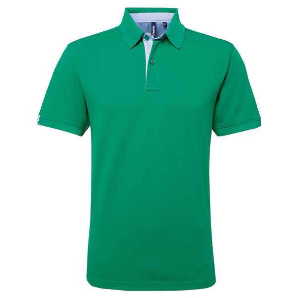 Asquith & Fox Men's Kelly/Sky Cotton Polo with Oxford Fabric Insert