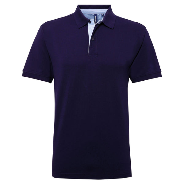 Asquith & Fox Men's Navy/Sky Cotton Polo with Oxford Fabric Insert
