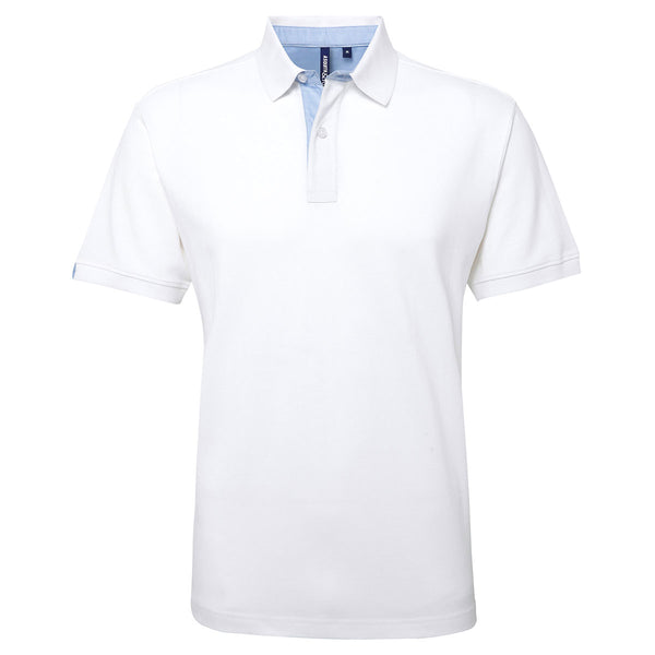 Asquith & Fox Men's White/Sky Cotton Polo with Oxford Fabric Insert