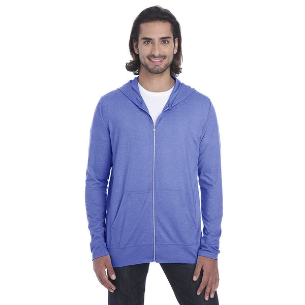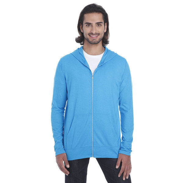 Anvil Men's Heather Blue Tri-Blend Full Zip Jacket
