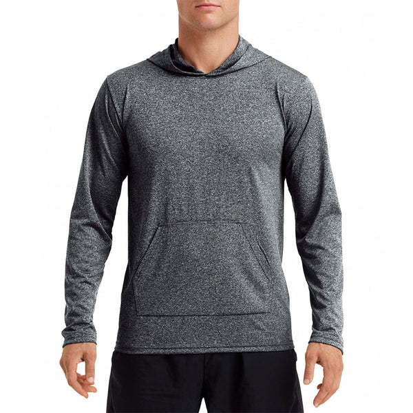 Gildan Men's Heather Sport Black Performance Hooded T-Shirt