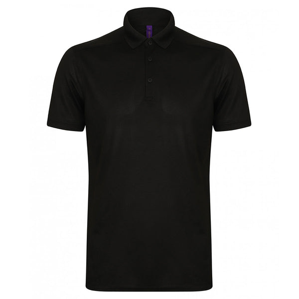 Henbury Men's Black Stretch Microfine Pique Polo Shirt
