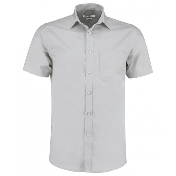 Kustom Kit Men's Light Grey Short Sleeve Tailored Poplin Shirt