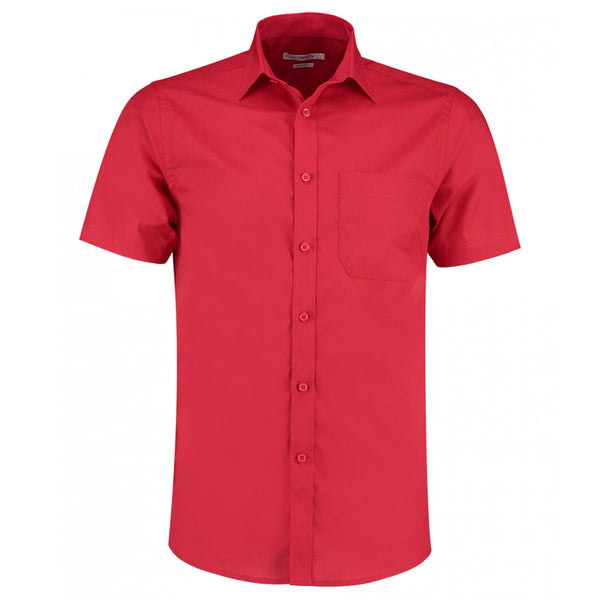 Kustom Kit Men's Red Short Sleeve Tailored Poplin Shirt