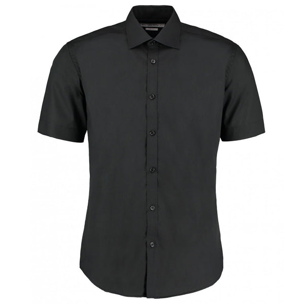 Kustom Kit Men's Black Short Sleeve Slim Fit Business Shirt