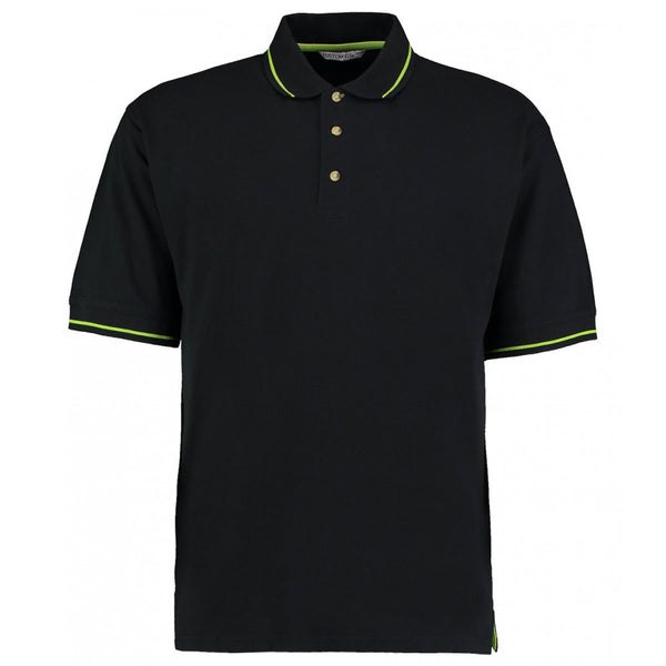 Kustom Kit Men's Black/Lime St Mellion Tipped Cotton Pique Polo Shirt