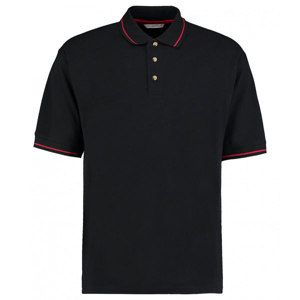 Kustom Kit Men's Black/Red St Mellion Tipped Cotton Pique Polo Shirt
